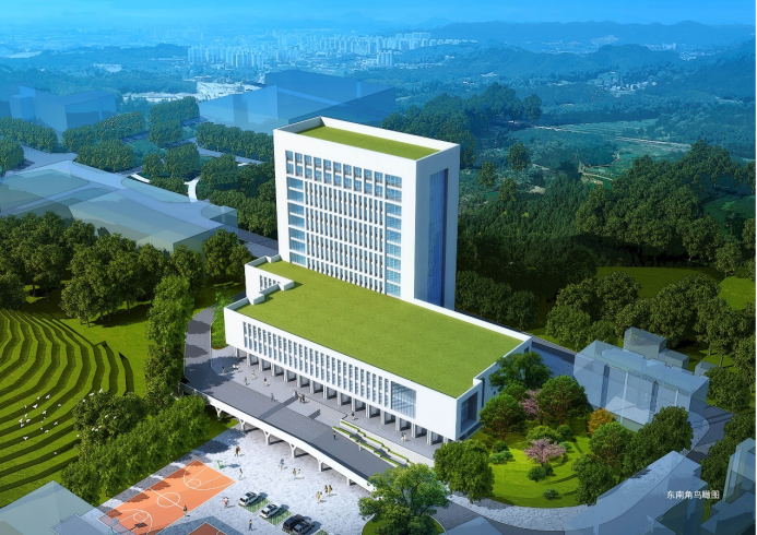 资源节约型、环境友好型。充分利用场地现有资源和地形,将现有水泵房保留井更新作为消防水泵房使用,保留井修整东侧景观园林,同时保护并利用的现有古樟树,与其北侧的景观园林一起打造出优美的校园次入口景观。利用地形高差设计半地下室,减少土方量,打造资源节约型、环境友好型工程。